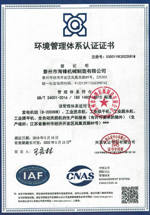 已先后通過ISO9001質(zhì)量認(rèn)證、ISO14001-2001環(huán)境管理體系認(rèn)證、GB/T28001-2001職業(yè)健康安全管理體系認(rèn)證,歐盟CE認(rèn)證、SGS認(rèn)證等